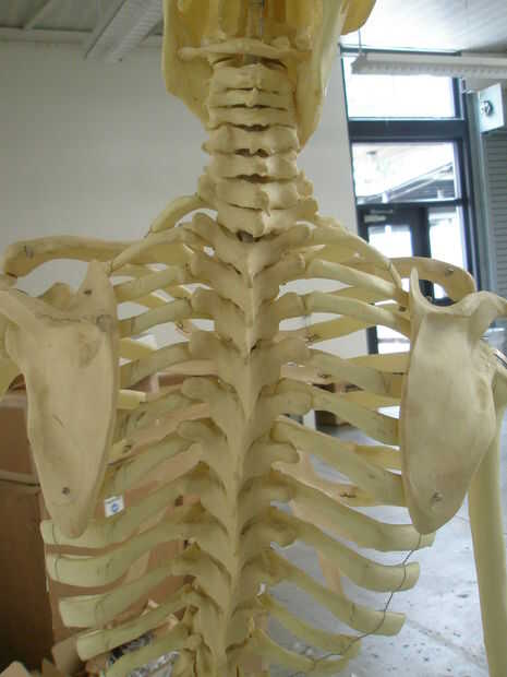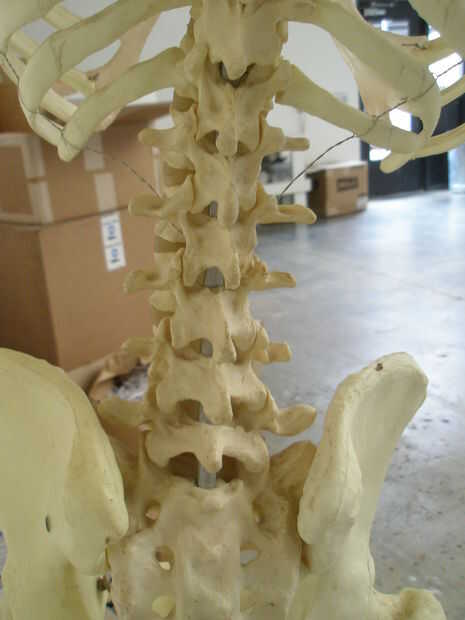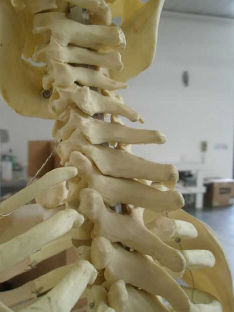 La columna vertebral consta de 33 vértebras (7 cervicales, 12 torácicos, 5 lumbares, 5 vértebras fusionadas para el sacro y 4 vértebras fusionadas por el coxis).