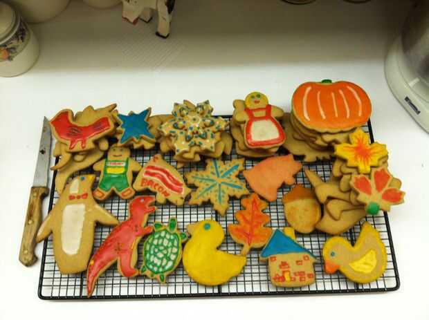Hacer galletas festivas para cualquier ocasión con este glaseado simple y delicioso. Las cookies patrióticas en la foto son galletas de mantequilla, el grupo diverso es gingerbread.