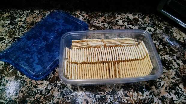 OK, aquí es el paso más difícil (al menos para mí...), usted tiene que encontrar un recipiente adecuado de plástico. Empieza a buscar todos el almacenamiento envases de alimento, Tupperware, Rubbermaid y zip tinas de seguro que tienes en tu cocina. Buscas un recipiente corto que puede contener tantas galletas como sea posible, en un lugar cerrado. Una tapa estanca es importante ya que le haz hojeado por encima. Idealmente este contenedor tendrá 4 mangas todos, pero he usado 2 recipientes, para que no te preocupes si tienes que dividir para arriba.