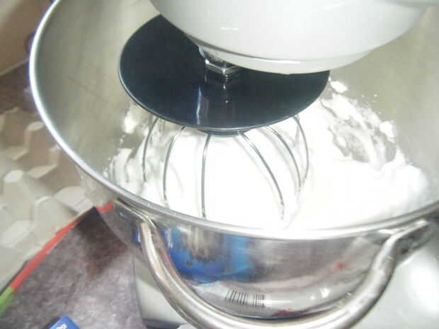 1. configurar horno a 120 grados Celsius en el elemento inferior (si tienes elementos en tu horno). 2. Vierta las claras de huevo en el master de la mezcla de sal y encender alto hasta huevos forman picos rígidos. 3. agregar el azúcar impalpable, un poco a la vez y deje mix master hasta que toda el azúcar se ha mezclado pulg. para comprobar que se mezcla conseguir un poco de la mezcla y mantener mezcla molido entre los dedos si llena algunos granos si no se hace.