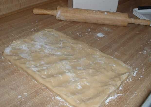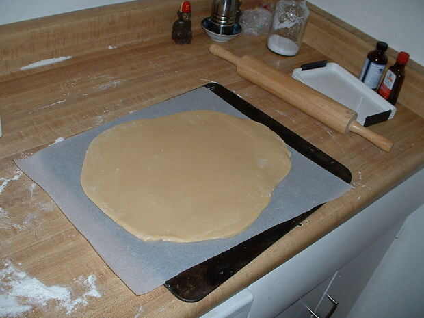 Utilice el papel de pergamino para tirar la masa en una bandeja de labio menos sin deformarla. Porque la masa es ser cocido al horno en hojas grandes, el papel de pergamino es vital para poder obtener un fuera de la bandeja para hornear galletas sin agrietarse o doblar el producto.