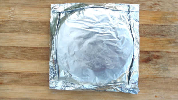 4. Doblar los bordes de la hoja hacia abajo para crear una bolsa. Comience con los lados y luego la parte inferior y la parte superior. Si se puede, doblar cada lado dos veces para que las galletas pizza no escapar.
