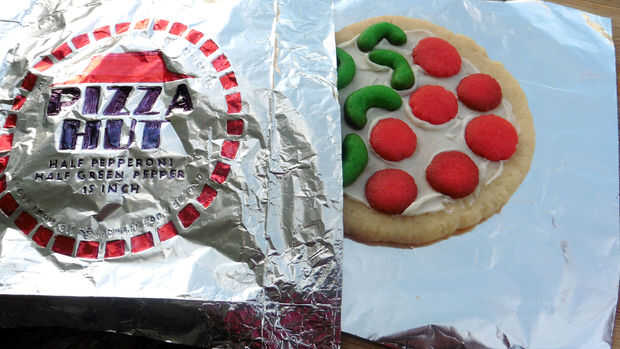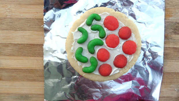 3. Coloque una hoja de papel hacia abajo encima de la galleta de la pizza.