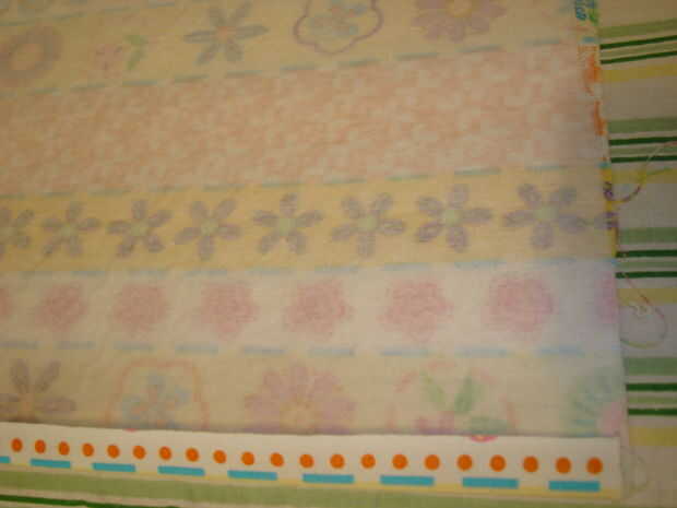 • Gire hacia abajo un dobladillo de 1/4 de pulgada en ambos bordes largos de la tela de soporte de la tarjeta.