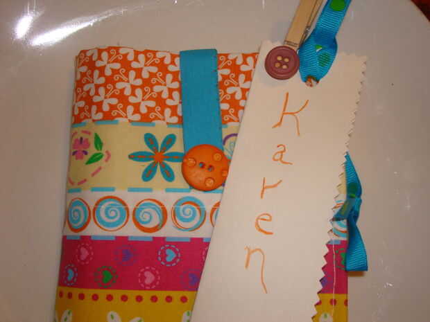 No pienso cuando tomé las fotos de la etiqueta de nombre, pero las fotos no muestran la etiqueta de nombre cubierta de papel de contacto.  Haciendo esto... pensé que iba a durar mucho más tiempo.  Me aseguré de agregar los materiales necesarios para a la lista de fuentes.
