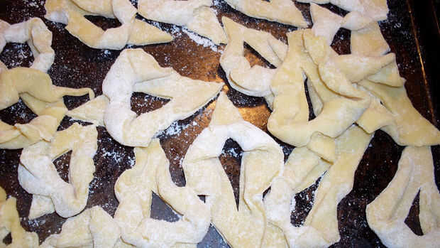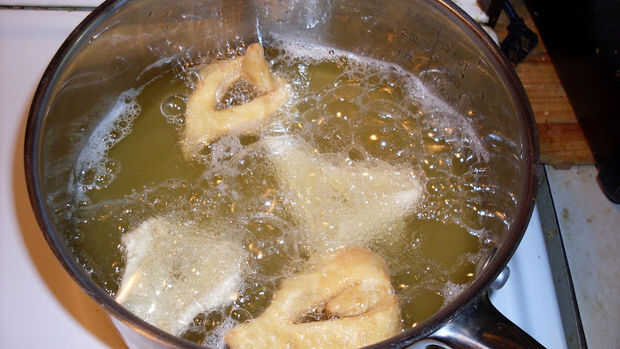 Calentar aceite y freír la pasta hasta que esté dorada. Coloque galletas fritas sobre toalla de papel y colóquelos en un plato para servir.