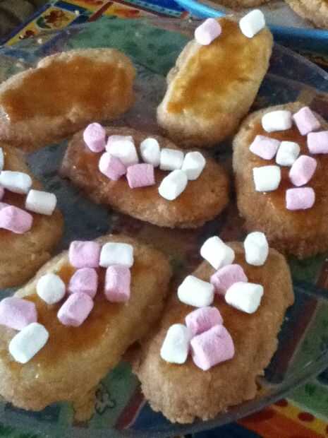 Poner algunos malvaviscos mini. También hice algunos con pasas así y eran agradables.