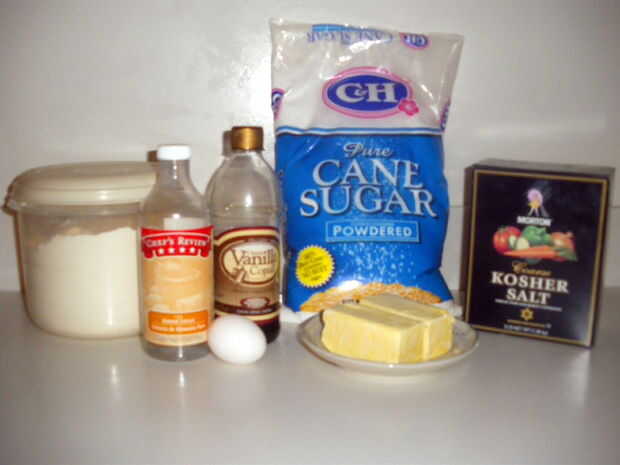 Crema de mantequilla y el azúcar juntos en un tazón grande.  Añadir el huevo y mezcle bien.  Agregar los extractos y mezclar.  En un recipiente aparte, mezcle el harina y la sal.  Gradualmente agregar la mezcla de harina hasta que totalmente incorporado.  Envolver la masa en papel plástico y refrigere durante al menos 2 horas.  La masa estará pegajosa y suave.  Se endurezca en la nevera.