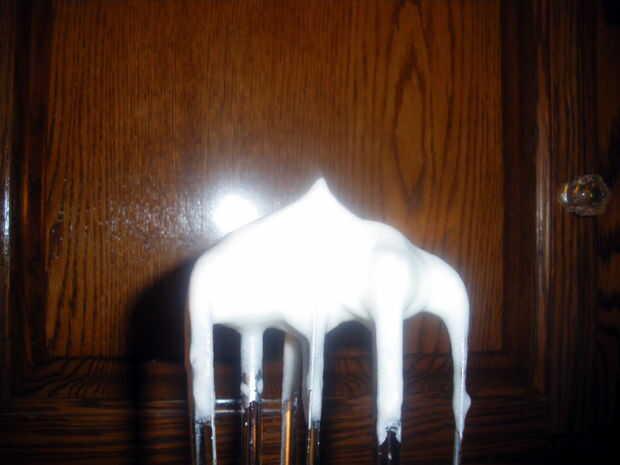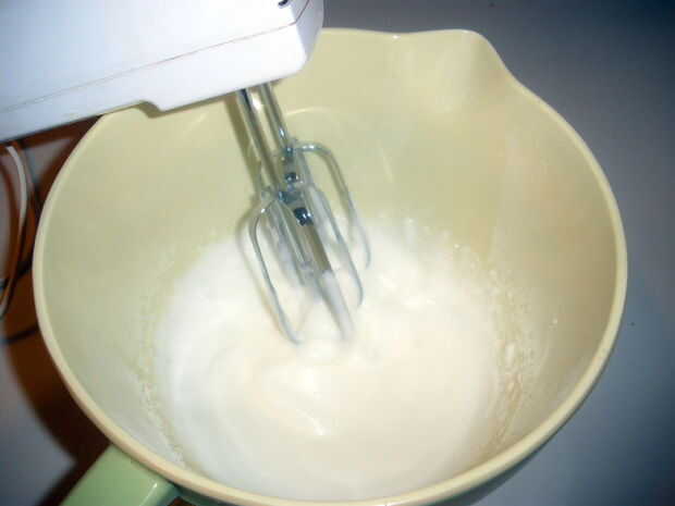 Batir el polvo de merengue y el agua a velocidad alta hasta que se han formado picos suaves y rígidos.  Gradualmente añadir el azúcar glas hasta obtener la consistencia deseada.  El glaseado debe ser muy espeso.  Recuerde que puede siempre ser adelgazado abajo más tarde.  Añada los ingredientes restantes y mezclar hasta combinar.  El Crisco y jarabe de maíz pueden omitirse, pero ayudan a la formación de hielo seco con un bonito brillo.