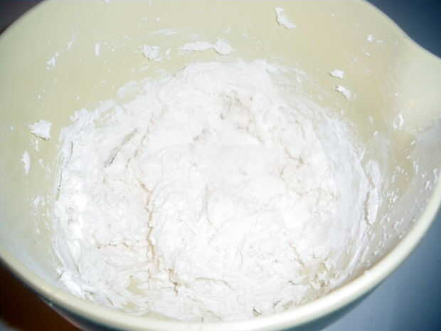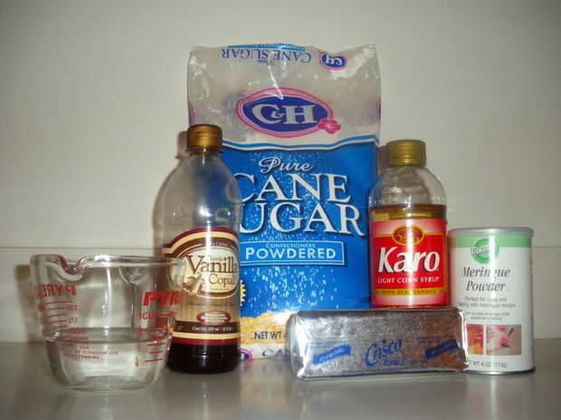 Batir el polvo de merengue y el agua a velocidad alta hasta que se han formado picos suaves y rígidos. Gradualmente añadir el azúcar glas hasta obtener la consistencia deseada. El glaseado debe ser muy espeso. Recuerde que puede siempre ser adelgazado abajo más tarde. Añada los ingredientes restantes y mezclar hasta combinar. El Crisco y jarabe de maíz pueden omitirse, pero ayudan a la formación de hielo seco con un bonito brillo.