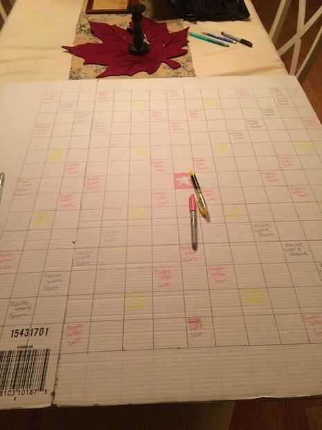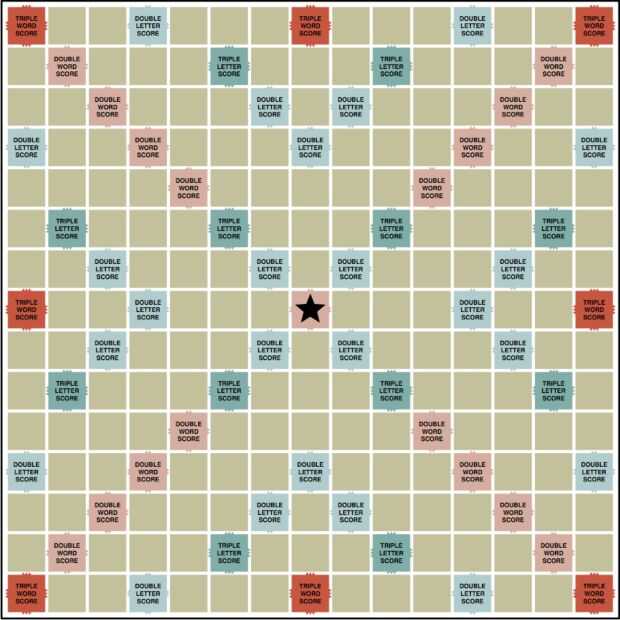 Ahora utilizando como referencia una imagen de tablero de scrabble, marque donde están las baldosas especiales en el tablero. Puede parecer un montón de cosas, pero solo repite los mismos patrones para las puntuaciones de