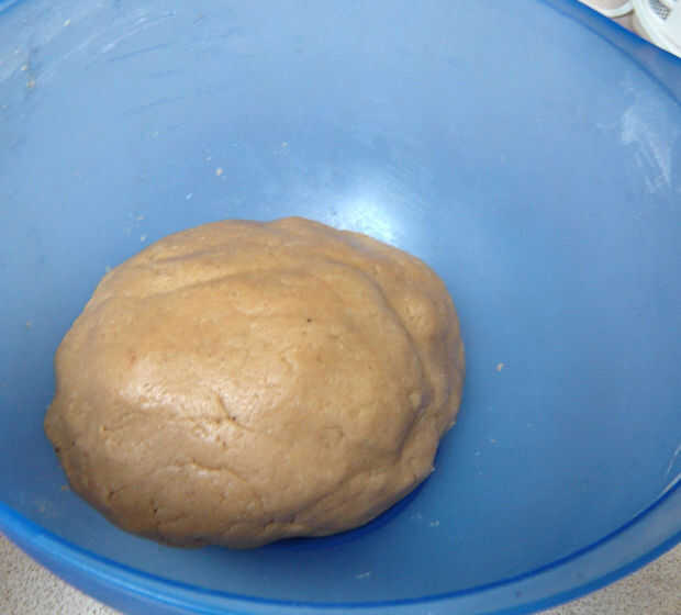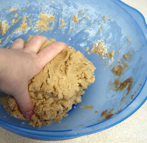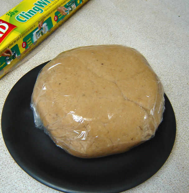 En este punto deberá amasar la masa para trabajar en toda la harina (si es demasiado seco que se puede añadir un poco más de leche).  Formar la masa en una bola suave, envolver en plástico y conservar en la nevera durante la noche (o si estás en un apuro, un mínimo de una hora).