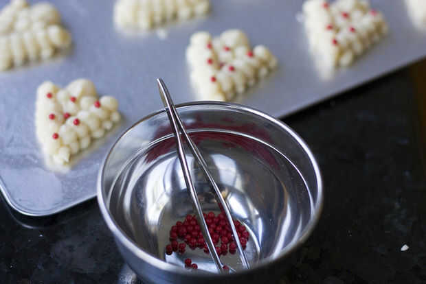 Hornear 8-10 minutos o hasta que el conjunto y fondos son dorados. Transferir las galletas a una rejilla para enfriar completamente.