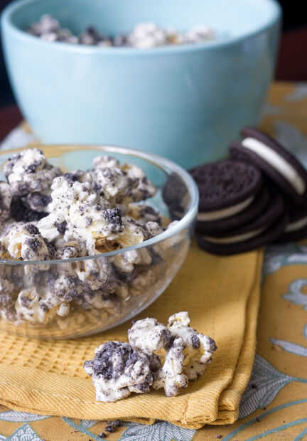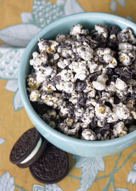 -Mezcla las palomitas de maíz y galletas Oreo machacada hasta que distribuye uniformemente.