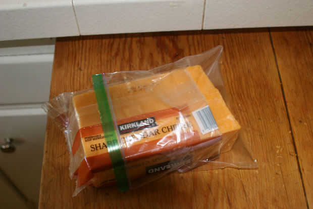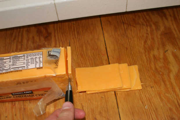 Una vez más, otro auto explicativo paso. Todo lo que realmente necesita hacer es obtener su bloque de queso, abrirlo y luego cortar unas lonchas de ella. Si usted quiere, usted puede cortar en el tamaño de las galletas. Una vez hecho el corte, puede fácilmente almacenar su queso por conseguir una bolsa de sándwich de plástico y solo ponerlo sobre el extremo abierto del bloque, luego refrigere su queso.