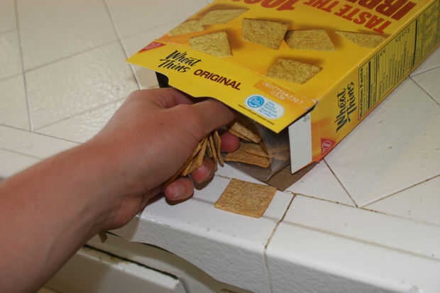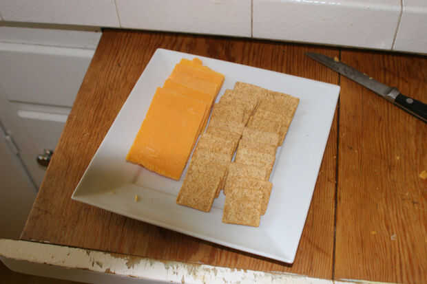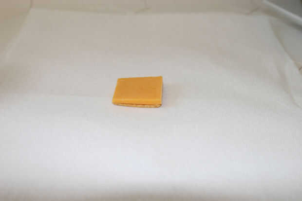 - Añadir una loncha de queso que se corta del tamaño de la galleta y poner encima de la galleta