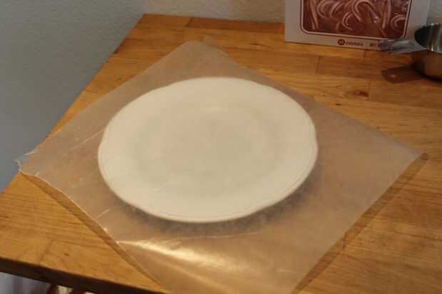 Preparar un lugar para tus galletas, colocando un trozo de papel de pergamino y a la cera en un plato pequeño y mediano.