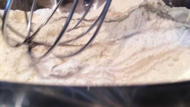 Comenzar mezclando la harina, polvo de hornear y la sal. En un intestino separado, crema de la mantequilla y el azúcar junto. Batir el huevo con vainilla y extractos de almendras y añadir a la mezcla de mantequilla y azúcar. Tamizar la harina y revolver hasta que se forma una masa. Dejar la masa enfriar en nevera durante 2 horas.