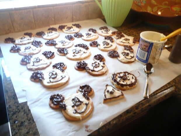 miré en todo el internet para obtener instrucciones para éstos, pero ninguno de ellos parecía adecuado, por lo que he creado estos. Yo al horno galletas de azúcar usando el cortador de galleta en forma de ratón que obtuve en Disney World. Luego, se extendió vainilla formación de hielo en la cara, hilo de estrellas chocolate en las orejas, y usando una punta redonda, canaliza su rostro en el chocolate. ¡ Estaban tan deliciosos!