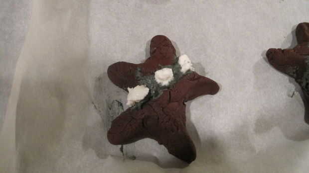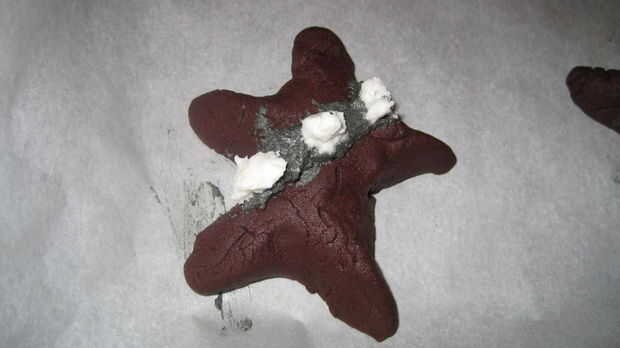 Después de las galletas de refrigeración coge el dos helar lotes para hacer correas para los Wookies.  Para derecha sería más fácil usar un palillo de dientes, pero si no tienes alrededor a una mentira extender el glaseado con la punta de su dedo (espero que lavarse las manos antes de cocinar: D). en primer lugar, hacer la capa de base para el cinturón por separarse de una línea de negro betún diagonalmente sobre el pecho del Wookie.  Tratar de mantener esto tan suave como sea posible, eliminar cualquier exceso globs de glaseado que se sobresalen.  Después de la capa negra, agregar tres toques cuadrados pequeño de blanco glaseado encima de la línea negra para emular las bolsas de munición.