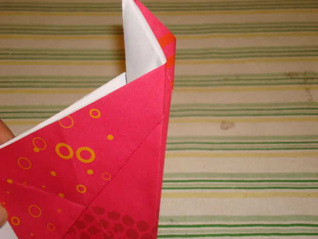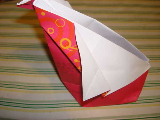 Yo se doblar la gallina con el papel. Para el paño es el mismo excepto el plegado de la pieza principal. Lo alteré para mis modificaciones como se muestra en las fotos. Me gusta mi version mejor porque es más realista.