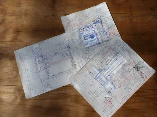 Esto es realmente "paso uno", pero mis dibujos son tan malas que escondió de nuevo aquí. Sacar el diseño es una buena manera de detectar problemas y solucionarlos antes de empezar a cortar madera. Se necesita algún papel de gráfico, escala de un ingeniero, un lápiz afilado y mucha paciencia. Tómese su tiempo y pensar en cómo cada junta se reúne y se adhiere a las placas adyacentes. Hacer dibujos de cada pared y un plano. Prestar especial atención a las medidas donde se superponen tablas e incluyen esta superposición en las dimensiones finales. Creo que es la única manera efectiva de hacer este tipo de proyectos con dibujos escalados para cada pared. Casi siempre habrá cambios de diseño menores como usted construye, y cuando haces cambios Asegúrese de mirar a todas las partes que se verán afectadas por estos cambios. Es mucho más fácil realizar cambios en el papel que al volver a cortar tablas. Algunos de mis dibujos están en la foto, y se puede ver que pasé por muchas iteraciones para tratar de averiguar la mejor manera de poner las cosas juntas. Mucho dependerá en qué materiales usted tiene disponible. Si este iba a ser hecho de madera contrachapada u otro material, el diseño hubiera sido diferente. Incluso con toda mi planificación, todavía funcionó en un montón de problemas durante la construcción, siempre hay una solución, sólo ser paciente y pensar en el problema. Si las cosas no funcionan bien, volver a la mesa de dibujo (ver último paso).