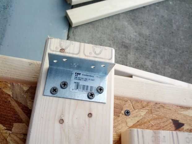 El diseño básico fue construir un marco similar al techo inclinado en la foto de ejemplo. Inicialmente usé una plantilla de pocket tornillo pero causó algunos problemas de integridad estructural grave usé pequeños soportes de acero. Hablé con uno de mis compañeros de trabajo y dijo que sólo no configura la plantilla correctamente. Quizás en el futuro voy a ver si se puede utilizar de mejor manera.