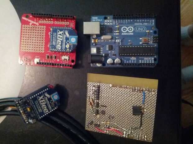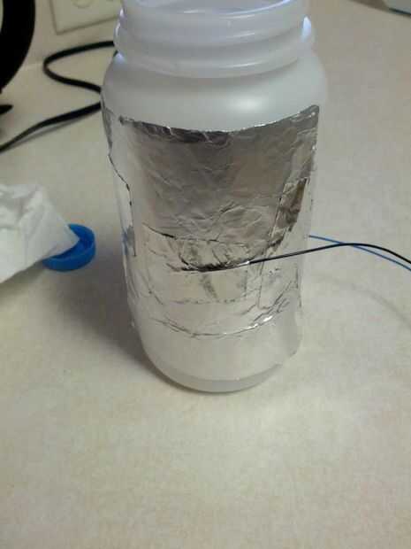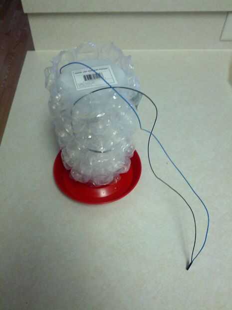 Termistor es sólo una norma NTC con un pullup k 10. El sensor de agua es de dos piezas de aluminio a ambos lados de la botella de agua. Un lado está conectado a tierra, al otro lado está ligado con el conector de sentido. Una resistencia de 1 Mohm es puente entre las patillas de recepción y enviado. La biblioteca capsense para Arduino hace esta bastante directo. Sensor de la puerta es de sólo dos piezas de aluminio que conecta la clavija a tierra cuando la puerta está cerrada.