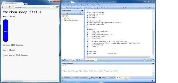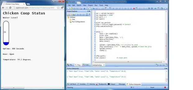 aquí. El código se divide en tres partes: lado Arduino, Web y pc. Arduino Lee los sensores y formatos de los datos en un mensaje de json. Esto se envía sobre Xbee a la laptop. El código de python lee los datos guardan en un archivo de texto y luego carga el archivo al servidor web vía ftp. En el futuro me gustaría tener una manera de empujar los comandos al controlador desde el sitio Web.