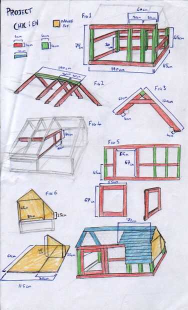 Los siguientes planes son una guía preliminar a la construcción de la cáscara básica de un gallinero. Usted tendrá que utilizar su imaginación para agregar todos los accesorios y las guarniciones :-). Todas las medidas están en centímetros.