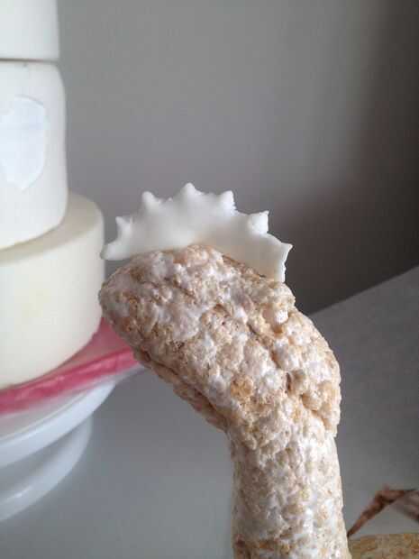 Comenzar a añadir plumas sobre el cuerpo del pollo. Puede pegarlos con glaseado real, glaseado de azúcar glas, clara de huevo pasteurizada o chocolate derretido incluso
