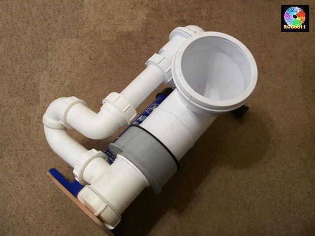 Las piezas de plomería eran todas atornillan en tan pequeño un espacio lo más posible y conectado. Una base MDF se redujo a apoyar el extremo inferior con una tuerca y el perno a través del tapón de la trampa de la ducha, esto hace que sea bastante resistente.