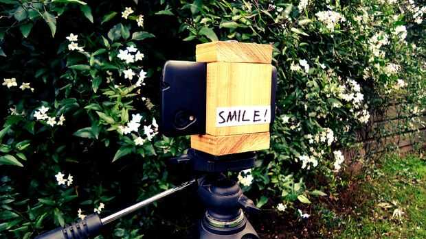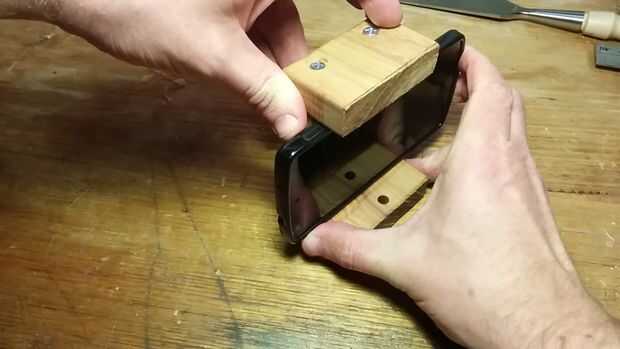 Utilice los tornillos de madera para montar la parte superior e inferior de la pieza posterior. Algunos pequeños ajustes en los tornillos pueden ser necesario, para asegurarse de que el teléfono todavía se ajusta perfectamente. Todo lo que queda por hacer es Fije el montaje del teléfono inteligente al montaje del trípode y fíjelo al trípode. Mi forma era lo suficientemente bueno para usar en el modo paisaje y retrato. Ahora que terminaste.