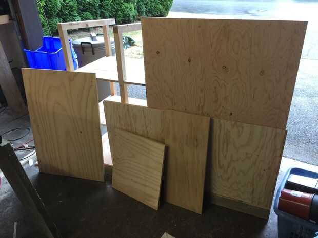No es estrictamente necesaria si usted está construyendo esta contra una pared, pero yo quería evitar insectos rastreros en a través de las brechas en el revestimiento. Mina estaba hecha de una mezcla desordenada de recortes reciclados (6 piezas diferentes, nada menos!). Asegúrese de que su marco es cuadrado antes de colocar la parte posterior.