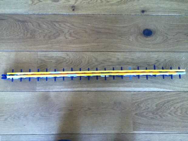 aquí es mi ballesta impresionante que construí. Me tomó una semana para llegar a este estado actual...Fácilmente puede disparar a través de cartón! Al principio, construí una versión más pequeña de esto pero su sistema de disparo no funcionaba, así q