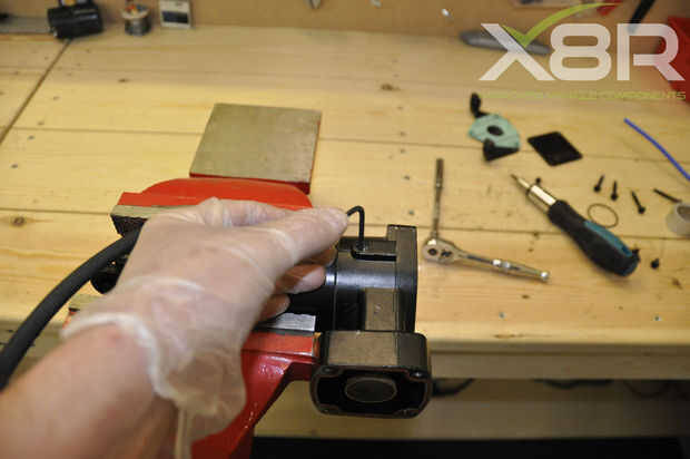 Esto liberar el pistón, diapositiva fuera de eje y eliminar a través de la abertura de la placa de cara, tenga cuidado de no para doblar el pistón si necesita la palanca de posición.