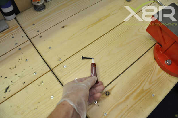 Aplique Loctite para tornillos y colocar de cabeza.