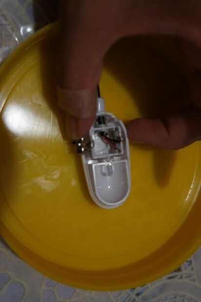 Vamos a pelar un cable USB, generalmente tienen 4 cables, cortar el blanco y verde, no nos sirven ahora. Vamos a hacer un agujero en el lado de la cubierta y pasar los cables a través. Después de la pasada el LED soporte y soldadura al negativo y positivo LED ultra colocar el resistor de 360 ohm. LED Coloque el soporte de la tapa y pondrá en la cubierta. No llevó a titular en busca de un impermeable o un sello tan bien ninguna humedad al circuito.