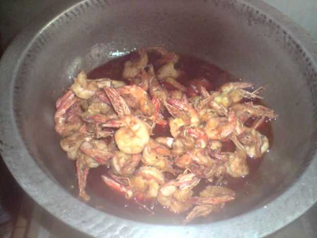 y den en otro wok agregar pekeño vege aceite n añadir chopd jengibre ajo n n clavo crushd togathr n fry fw mts hasta que azúcar de lil anuncio aromático también, tht después añadir chillie salsa, salsa de tomate, salsa de soja, aceite de sesami, ostras salsa stir n stil hierva... y ad den d mezcla n gambitas por adin ajinamoto poco...