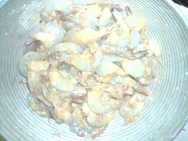tomar unos langostinos limpios y marinte mediante la adición de sal, harina, maicena, pimienta, salsa de soja n 1 huevo mantenga n asid 4 media hora... entonces fry que langostinos en aceite profundo.