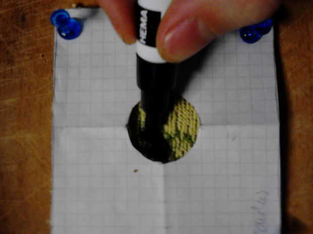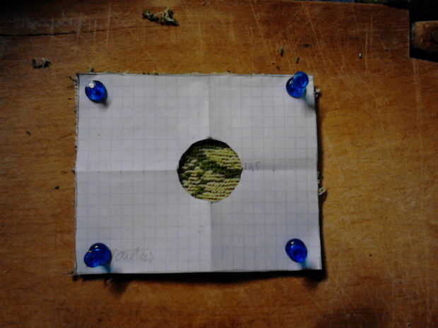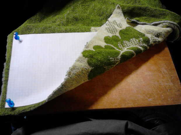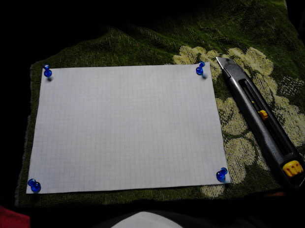 Comience por dibujar su diseño (a escala) hacia fuera en papel y recortarlo. A continuación tomar una tabla de cortar, colocar una toalla vieja ontop de trapo y coloque su corte parte del diseño y asegure con unas chinchetas. Use un marcador para trazar y cortar la pieza o sólo trazar el diseño con un hobby / cuchillo del exacto.
