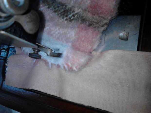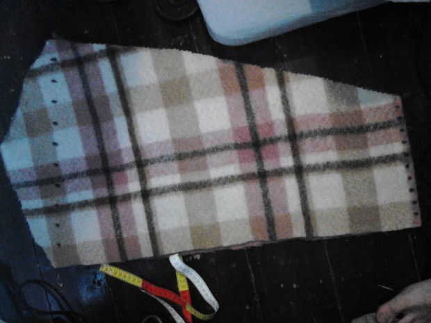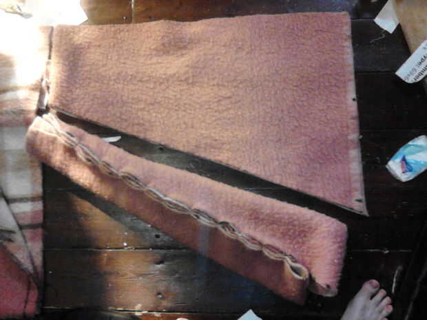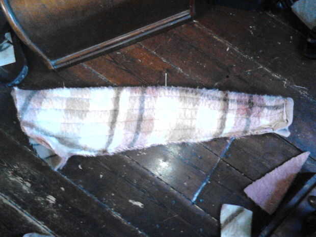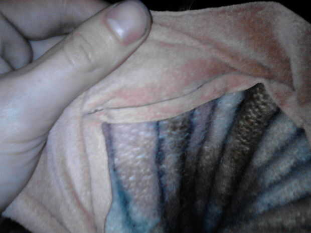 Ahora, en mi caso yo no pude coser juntos las cuatro capas de manta al mismo tiempo, así que coser los dos primeros juntos interno y luego cosió los otros ontop. Recuerde dejar un espacio en el lado de la muñeca para agregar corte a más tarde, cerca de 12cm fue dejada abierta en mis mangas.