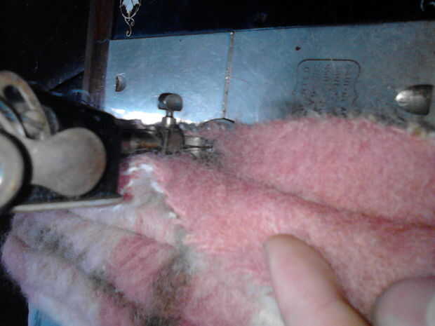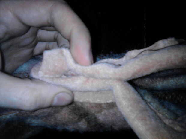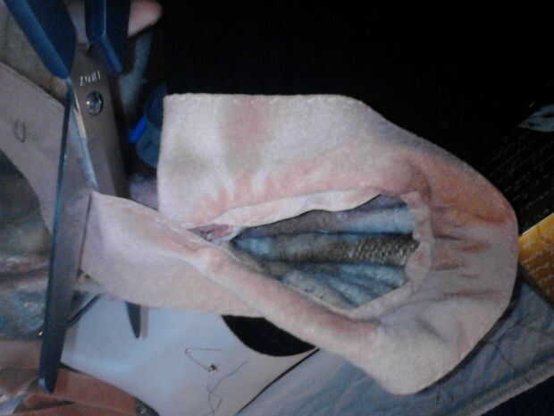 Ahora puede estirar el corte sobre el borde y se coser ontop de la costura anterior. Corte el corte exceso procedente de la parte angular y añadir unas cuantas costuras en la esquina para fortalecerlo. Ahora que terminaste! Tire adentro hacia afuera y empezar a hacer la otra manga...