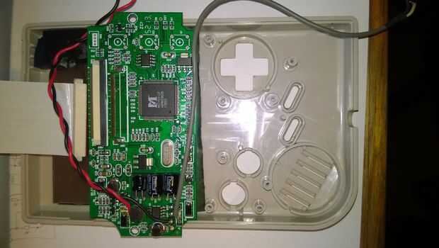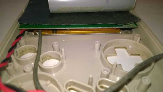2. la junta principal conduce el LCD es de unos 10mm más ancho que el ancho interno de la Gameboy. Así que miré en cómo esto podría recortarse del tablero para hacer ajuste pero no destruirla en el proceso. Lo llaman pura suerte pero como se aprecia en la foto pude quitar exactamente lo suficiente de cada lado, así como algunos componentes y los 3 pulsadores. Una foto muestra exactamente donde los lados fueron recortados, otro lo muestra sentado en su lugar detrás de la pantalla LCD.