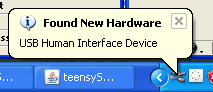 Subir el sketch! Se deben ver correctamente programa el Teensy y reiniciar el sistema. Entonces el sistema operativo le avisará que ha encontrado un dispositivo HID [ver imágenes 6D y 6e].