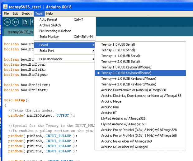 Ahora voy subir este bosquejo para el Teensy. Hacer un dibujo nuevo y copiar el código. Seleccione el elemento de Teensy 2.0 (teclado USB, ratón) desde el menú de tablero [ver imagen 6a].