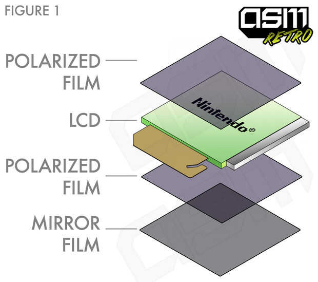 La lámina reflectante es transparente, por lo tanto necesita ser quitado para que la luz de fondo sea visible. Quitamos el film polarizado, porque si no, habrá una cantidad considerable de residuos de cola izquierda en él que es extremadamente difícil de eliminar. Además, mediante nuestro propio pedazo de película polarizada nos podemos "invertir" o "bivert" la pantalla LCD.