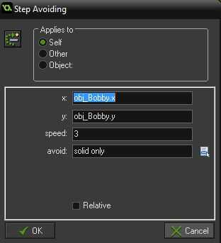 Ahora, en este bloque, hay una ranura para x y y coordina, así como de velocidad y evitar. Programa de la x y y coordenadas coordenadas de objeto (playerobjectname.x y playerobjectname.y debe ser la sintaxis correcta, que introduce en x e y ranura de coordenadas), crear una velocidad y luego evitar objetos sólidos solamente. Asegúrese de que sus paredes son macizas. Ahora, sus guardias se desarrollará en usted que evita a las paredes!