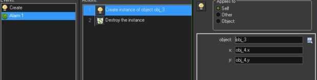 Ahora, en cada bloque del número excepto obj_1, decir "cuando yo soy creado, configurar alarma 1 30 pasos". Cuando se produce alarma 1, "crear instancia de (próximo número por ejemplo, si fuese número 4 que era ajuste de la alarma, crear número 3) en coordenadas del número que se ajuste de la alarma. Luego, destruir esta instancia".