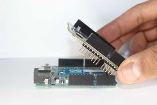 Después de subir el sketch de Arduino. Fije el 1Sheeld sobre el Arduino y conectar a la computadora.
